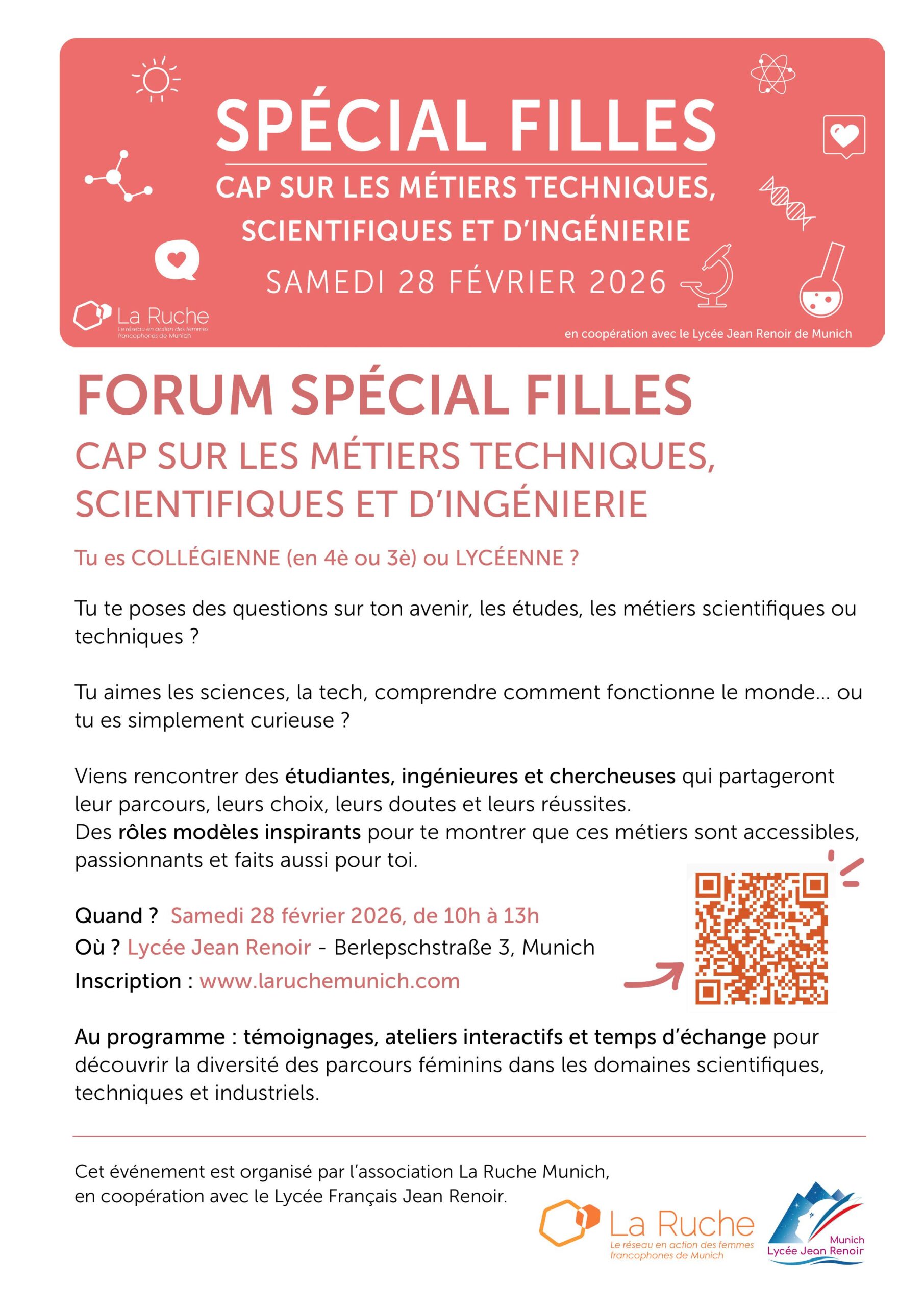 Organisé par La Ruche pour les collégiennes à partir de la 4e et les lycéennes.